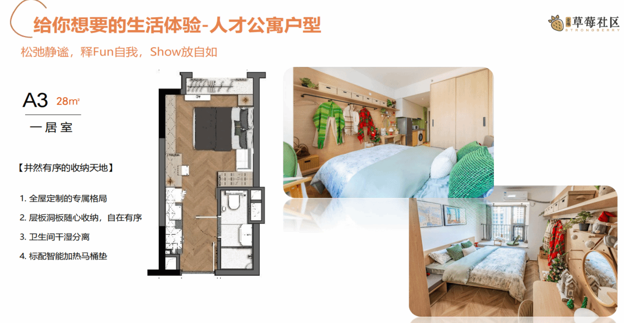 作为宝山区首个市级人才公寓,南大金地草莓社区于2025年5月正式上市供应,并入选上海第三批“房补联动”政策支持名单。更关键的是,入住人才可提取住房公积金支付租金,加之民用水电收费标准,居住成本显著降低。每套房间均为精装交付,洗衣机、冰箱、空调、Wifi等配置齐全,真正实现“拎包入住”。