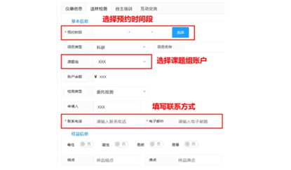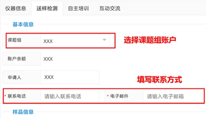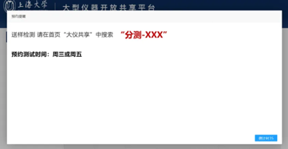选择仪器右侧的【送样检测】,阅读【预约提醒】。